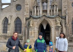Ze zastávky Kutná Hora – Sedlec jsme se vydali k sedlecké katedrále, kde jsme si prohlédli výstavu o architektovi J. B. Santinim. Dětem se velmi líbilo umístění výstavy v půdních prostorách katedrály. Z katedrály jsme zamířili do blízkého informačního centra. Zde dostaly děti za úkol zjistit, kde je nejbližší dětské hřiště. Dokázat se zeptat na cestu, to pro některé nebylo nic jednoduchého. Když navíc obdržely mapu, podle které měly hřiště najít, musely dát hlavy dohromady a vymyslet další postup. Hřiště bylo brzy nalezeno, a tak si všichni mohli užít různé herní prvky.