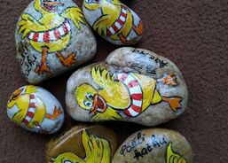 Bylo velmi milé si se všemi popovídat. Největší kačka za odvahu patří mamince, která přijela s dětmi až od Berouna. Paní s pejskem zase pro děti nakreslila krásné kamínky. Děkujeme všem za pohodový přístup.