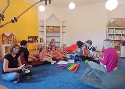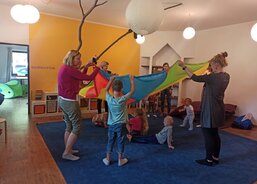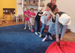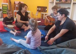 Každý den jsme zpívali s kytarou a rytmickými nástroji, hráli si s padákem a večer hráli spolu s dětmi také pohádku na dobrou noc – o čem jiném než o zvířátkách.