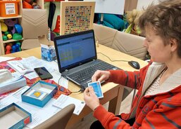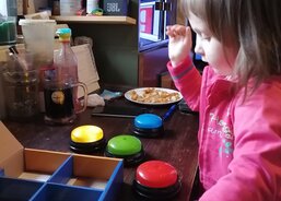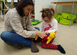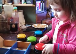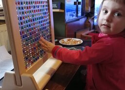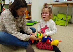 Jednou z prvních klientek, která si užila nové pomůcky, byla čtyřletá Anička. Anička má obtíže s udržením pozornosti a od malička musí nosit brýle. Nasvícený kuličkový panel holčičku dokáže zklidnit a stimuluje její zrakové vnímání. Balanční zeď, kterou jsme postavili v herně, zase umožňuje trénink hrubé motoriky a rovnováhy. „Balanční zeď byla pro Aničku velkou výzvou. Musela se cíleně zklidnit, zpomalit svoje pohyby, začít se soustředit a opatrně zeď přejít. S mírnou dopomocí se jí to podařilo na jedničku s hvězdičkou,“ chválí klientku Marie Teplá, vedoucí služby rané péče. Aničce se také zalíbila oblékací housenka. Každý dílek housenky obsahuje kapsičku s jiným druhem zapínání, které slouží k procvičování jemné motoriky. Na rozepínání a zapínání budeme s Aničkou ještě pracovat. Snad jí pomůže, když si v rozepnuté kapsičce bude moci vyzvednout oblíbenou odměnu.