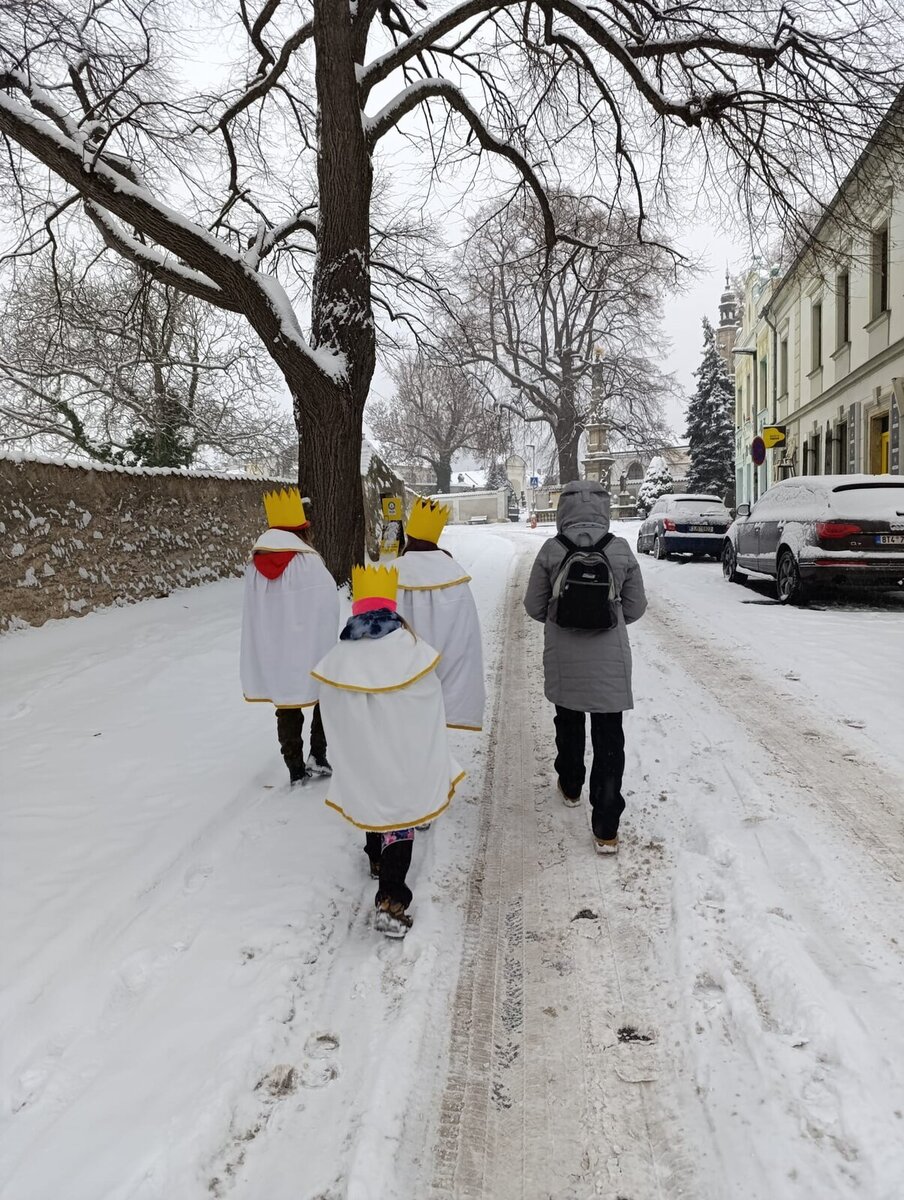 Jednou zase celou dobu hodně sněžilo a zvlášť pro menší děti bylo brodění sněhem hodně náročné. U jednoho domku třetí král neodhadl šířku přístupového můstku, šlápl vedle a zapadl po pás do sněhu. Když jsme zazvonili u jiného domu, zevnitř se ozvalo: „Tady nikdo není…“ a neotevřeli nám. Jak vidíte, někdy se i zasmějeme. Jindy jsme měli ve skupince krále, který měl strach ze psů. V jedné ulici jich bylo plno. Když se rozštěkali, zůstal raději na kraji a připojil se k nám, až když jsme ulici prošli.