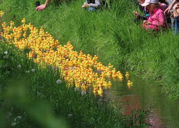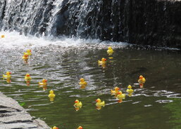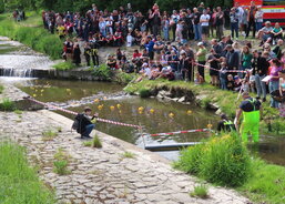 V sobotu 10. května se konal již 5. ročník benefičního závodu Pošli kačku. Krásné počasí přilákalo mnoho příznivců, především z řad rodin s malými dětmi. Na startovní čáru se postavilo 21 velkých firemních kaček a 756 malých závodnic. Ve dvou samostatných závodech se odvážně vrhly do proudu řeky Vrchlice a vyplavaly klientům charitního Střediska Na Sioně rekordních 104 250 Kč. Tyto finanční prostředky budou použity na speciální pomůcky a na vzdělávání pracovnic střediska, které je nutné k udržení kvality poskytovaných služeb. Děkujeme všem, kteří benefiční akci podpořili, a těšíme se na další ročník na jaře 2026!