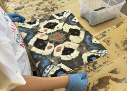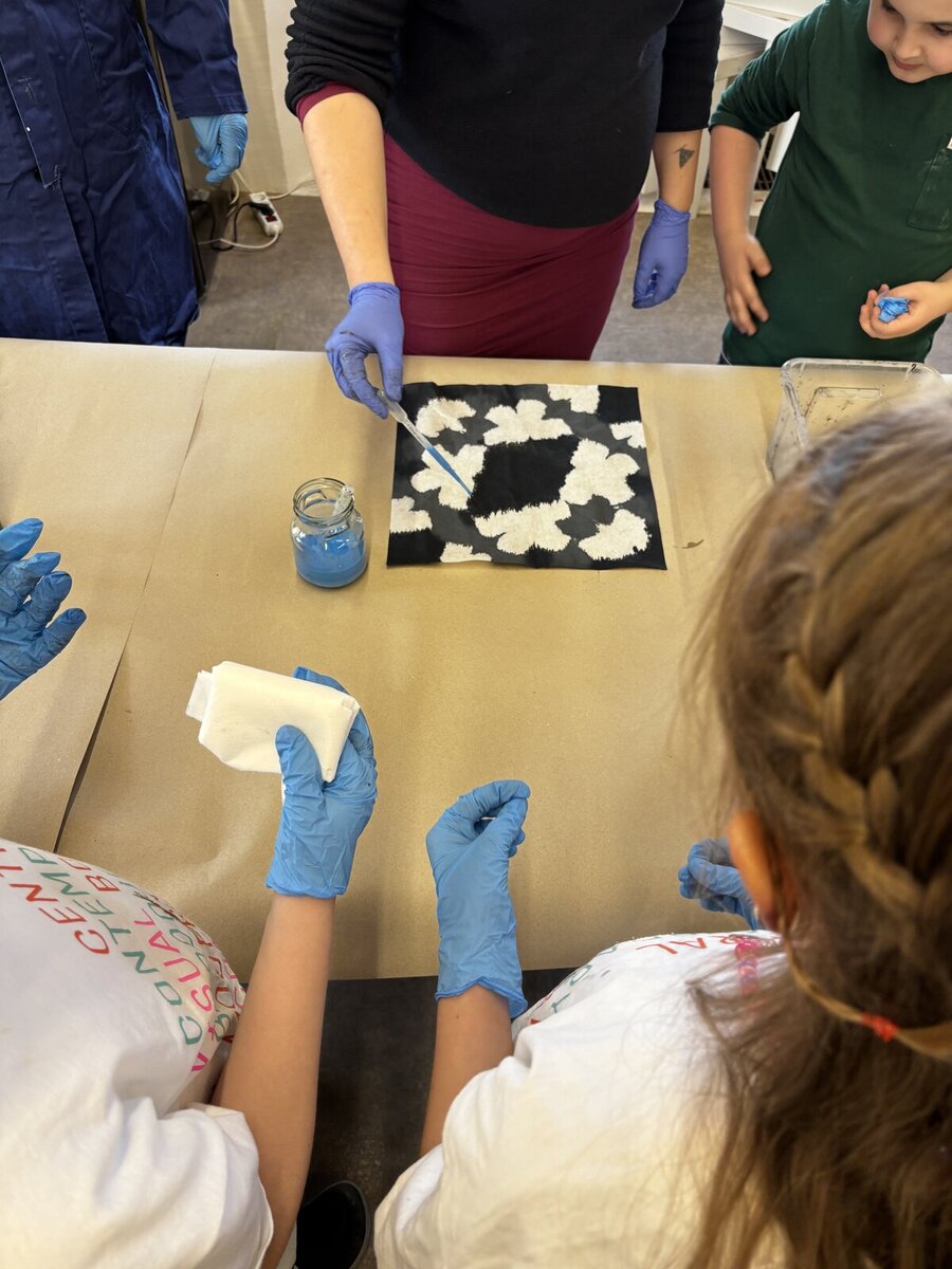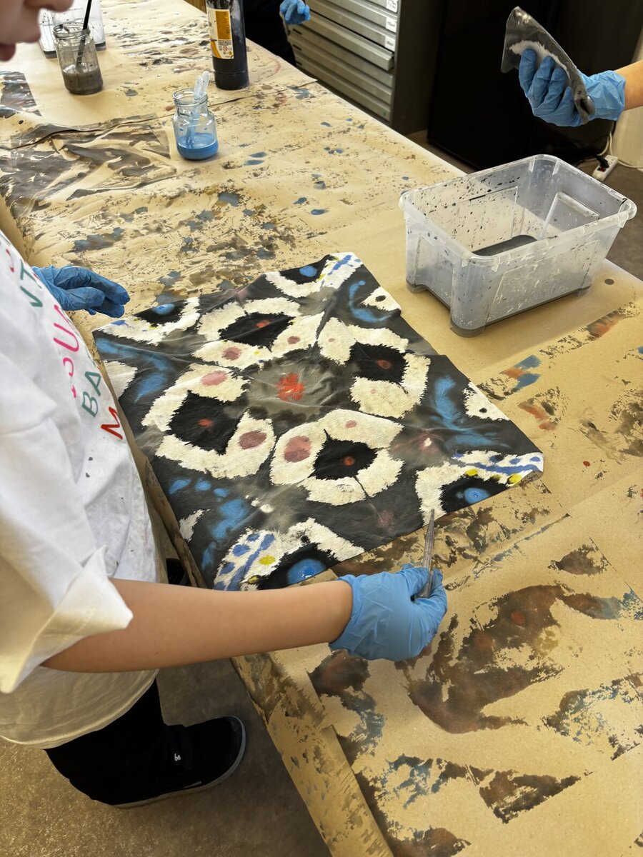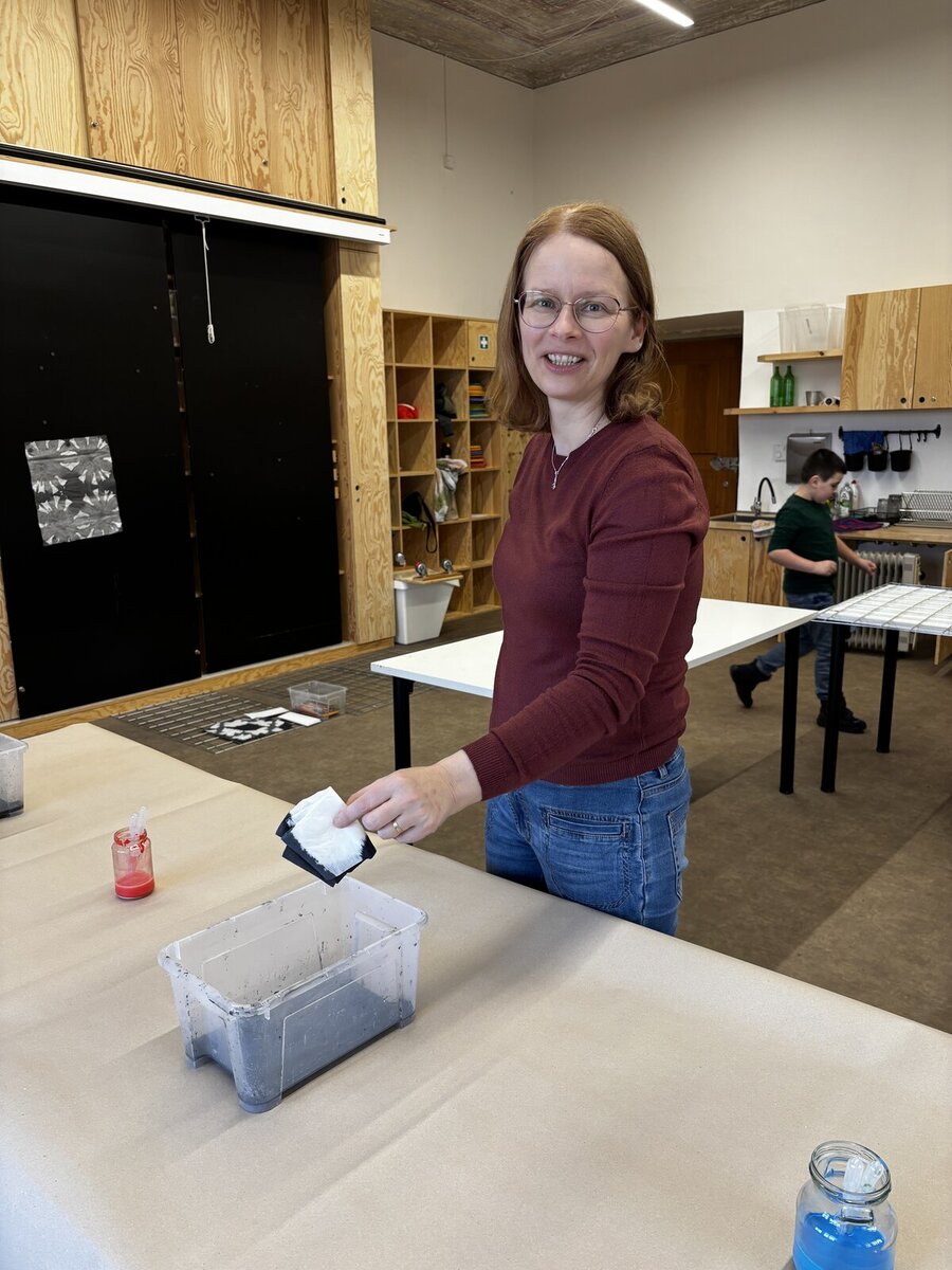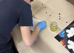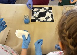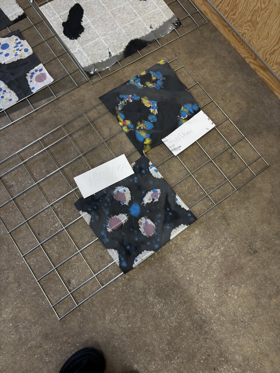 Na konci února jsem se vydali s dětmi na pravidelný výtvarný workshop, který pro nás připravuje lektorské centrum GASku. Tentokrát se nám ispirací stala výstava "Dalibor Chatrný 100", která přibližuje veřejnosti dílo jednoho z nejvýznamnějších českých umělců 20. století. Děti si vzkoušely jeden z jeho experimentálních přístupů - metodu prosakování. Ve výtvarné dílně jsme pracovali s prosakováním barev na několikrát přeložený perlan. Kromě základního postupu namáčení do kádinky s barvou jsme mohli kapátkem naše umělecké dílo ještě dotvořit. Na závěr jsme se šli krátce podívat na díla Dalibora Chatrného, která vznikla právě použitím této metody. Děti si výtvarnou dílnu opravdu užili a my děkujeme lektorce Karolíně Šteffkové za skvělé vedení.