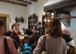Ve čtvrtek 14. června 2024 jsme se s dětmi, které k nám chodí na nácviky sociálních dovedností, vypravili do Kamenného domu. Zúčastnili jsme se edukačního programu Českého muzea stříbra "Středověká řemesla". Kamenný dům jsme prošmejdili doslova od střechy po sklep. Hledali jsme v expozicích výrobky různých řemeslníků a učili se je pojmenovat. Prohlédli jsme si Kutnou Horu z malého balkónku ve štítě domu a podívali se do sklepa k základům, které jsou postavené na skále. Úspěšný školní rok jsme zakončili ve středisku přípravou zmrzlinového poháru.