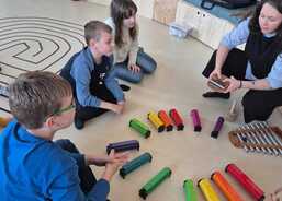 Měli jsme opět možnost zažít velice příjemný odpolední program pod vedením paní Karolíny Šteffkové. Děti se v průběhu programu v GASK (Galerie Středočeského kraje) staly součástí geometrických tvarů a mohly si tak uvědomit jejich konstrukci. Všichni jsme si prošli část výstavy a prohlíželi si různorodá díla. V krásných prostorách GASKu měly děti možnost vyzkoušet různé hudební nástroje na vlastní kůži. Byl to kouzelný zážitek.